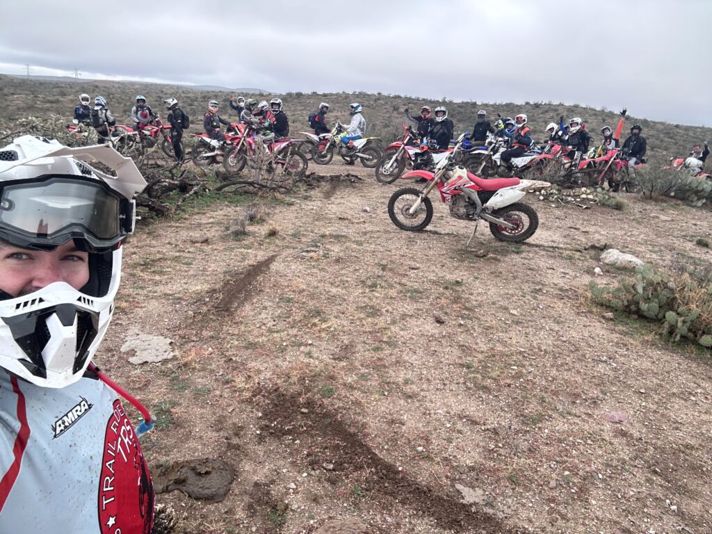 1. TRS’ New Years Day ride in San Manuel was epic! Thanks again to Parrish Traweek for allowing us to use the JWJ to stage this event. Almost 50 TRS members, family and friends were on hand to ride despite the rainy/foggy weather. Special thanks to Billy Sickman who work the grill to cook the brats and Chicago dogs, to Carla Parrish for making the homemade soup (potato and taco), and to Shawna Hollander for the homemade cookies. Riders split into 4 groups and enjoyed a dust free ride. Trail traction was ideal and the intermittent rain did not slow the riders down.